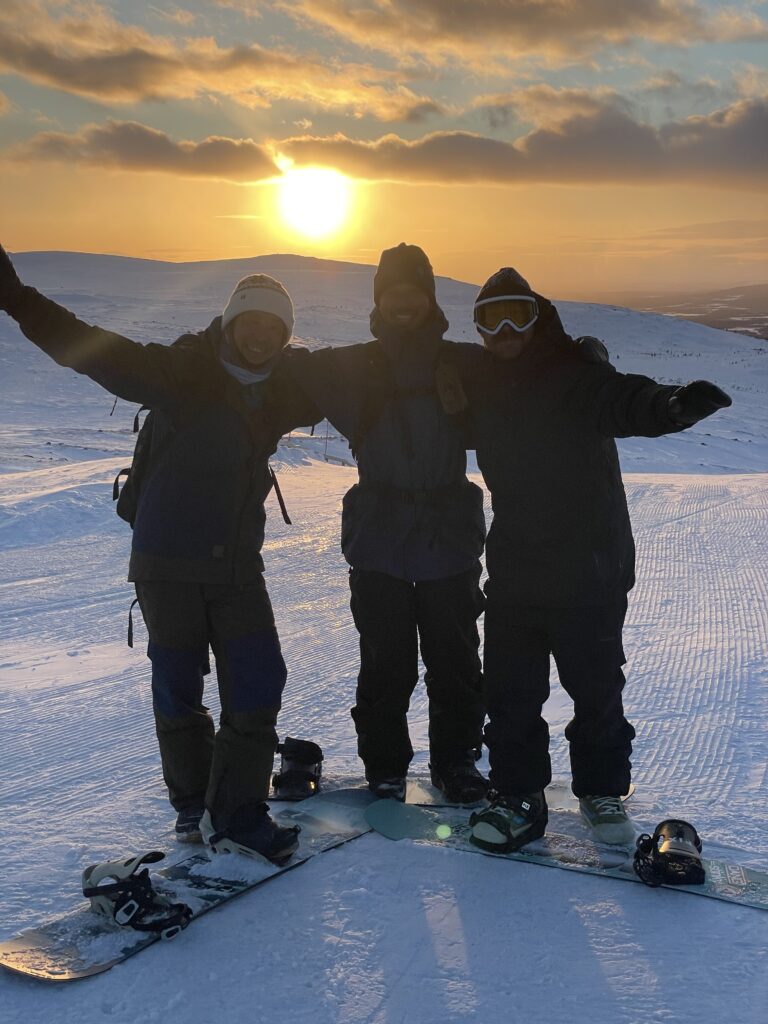 夕方からはゲレンデ上部で上映会。国営放送のドキュメンタリーに登場するインゲマーやヨハンの映像が、地元キッズの瞳をさらに輝かせる。外へ出れば、またもやオーロラ。暗く硬いコースを携帯ライトで下るスリルに、酒気と笑い声が混じる。カナダ、フランス、ドイツ、フィンランド、日本、アメリカ……母語で天候を嘆き、英語で雪の話題に戻り、最後はスノーボードという共通言語に落ち着く。ここでは「上手いor下手」以上に「一緒に遊ぶ」ことが価値だと、誰もが知っている。