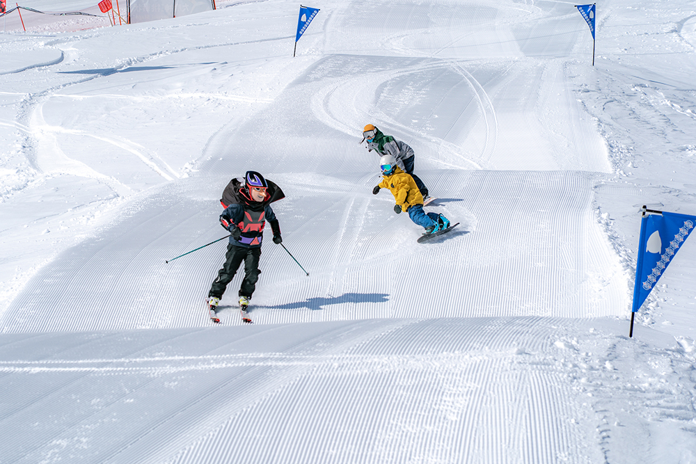設計にはスノーボードの動作分析がしっかりと活かされており、自然とテクニックがレベルアップしていくよう計算されている。“ファミリー向け”とはいえ侮るなかれ。コース設計の妙は、大人ライダーや上級者でも思わず唸るほど。仲間と一緒にチャレンジすれば、子どもたちの成長だけでなく、自分のライディング感覚の再発見にもつながるかも。