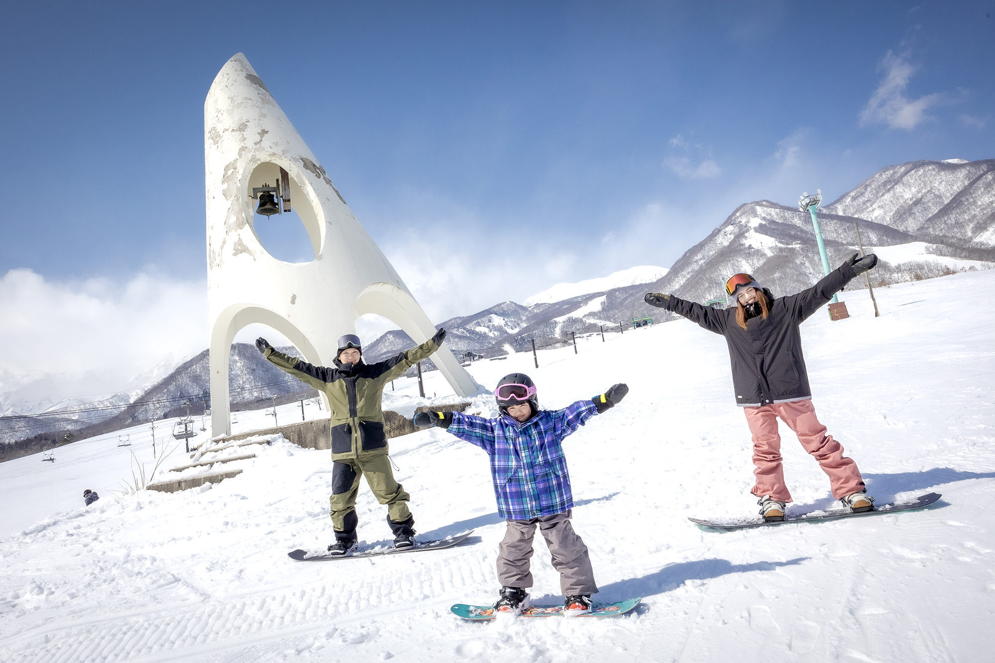 つがいけは、広く緩やかなゲレンデが多く、初めてボードやスキーに挑戦するキッズでも安心して練習できる環境が整っている。視界が開けているため、保護者が見守りやすいのも大きなポイントだ。