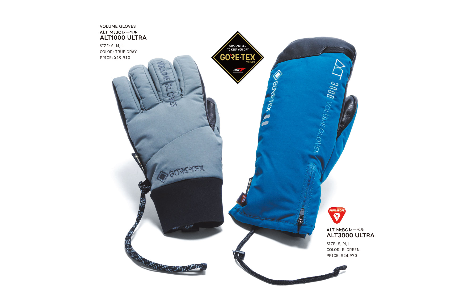 「ALT3000 ULTRA」は、ボリューム史上もっともあたたかく、もっとも頼れるグローブ。開発の出発点は「待ち時間が長くても指先が冷えないグローブを」というバックカントリーガイドの声だった。GORE-TEXを表地と内部インサートの両方に使う“ダブルGORE-TEX仕様” により、防水・防風・透湿性は最高レベル。中綿にはPRIMALOFT GOLDを従来量の約2倍手首まで配置。さらに、ボリュームグローブ独自の「指先キャップテクノロジー」が冷えの原因となる指先をガードし、真冬のかぐら山頂でも頼れる保温力を発揮する。新設計の「ノンストレスシェイプ」は“握る・開く” という基本動作にストレスを感じず、長時間の使用でも疲労を抑えてくれる。 グローブの着脱を容易にするカフ構造、長めの丈で袖の上から被せることが可能なデザインなど、実用性にも抜かりがない。バックカントリーから極寒のゲレンデまで、最上の快適性を求める全ライダーにとって、理想的な選択肢となっている。